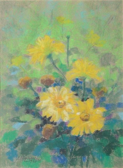 Born in Surigao City in 1940, she lives in Marikina. Fine Arts Major at University of Santo Tomas. She taught at the University of the East School of Music and Arts, and has worked with an advertising firm. Her first solo exhibit was in Surigao City.