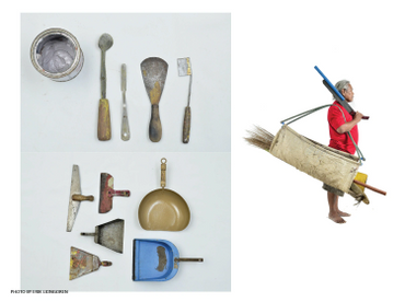 Liongoren's own artistic practice has undergone various shifts throughout these years; his choice of media ranging from oil acrylic and watercolor and his preferred subjects shifting back and fourth between figuration and abstraction. Whether stirred by the rhythm and rhyme of nature, the spirit of the nation, or the honest toil of labor, Liongoren's paintings seamlessly merge pristine naturalism, exquisite brushwork and the fervent drive to seek beauty in a broken world. During this time marked by hyperreality and pastiche, Liongoren's quiet art is a compelling reminder to look back at what is basic and essential to being. Increasingly drawn to the solace of nature, Liongoren's reflections on the current state of ecological peril-captured here in the work entitled Kalmot sa Kalikasan — have resulted in other projects and explorations, such as his new found fascination with inventing appropriate technology. Over the years, for instance, the artist has handcrafted a personal collection of customized tools: contraptions fashioned out of found objects and discards, finding renewed utility and longevity as implements for artistic creation.